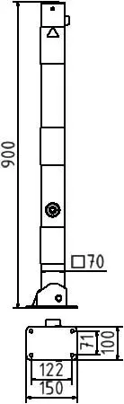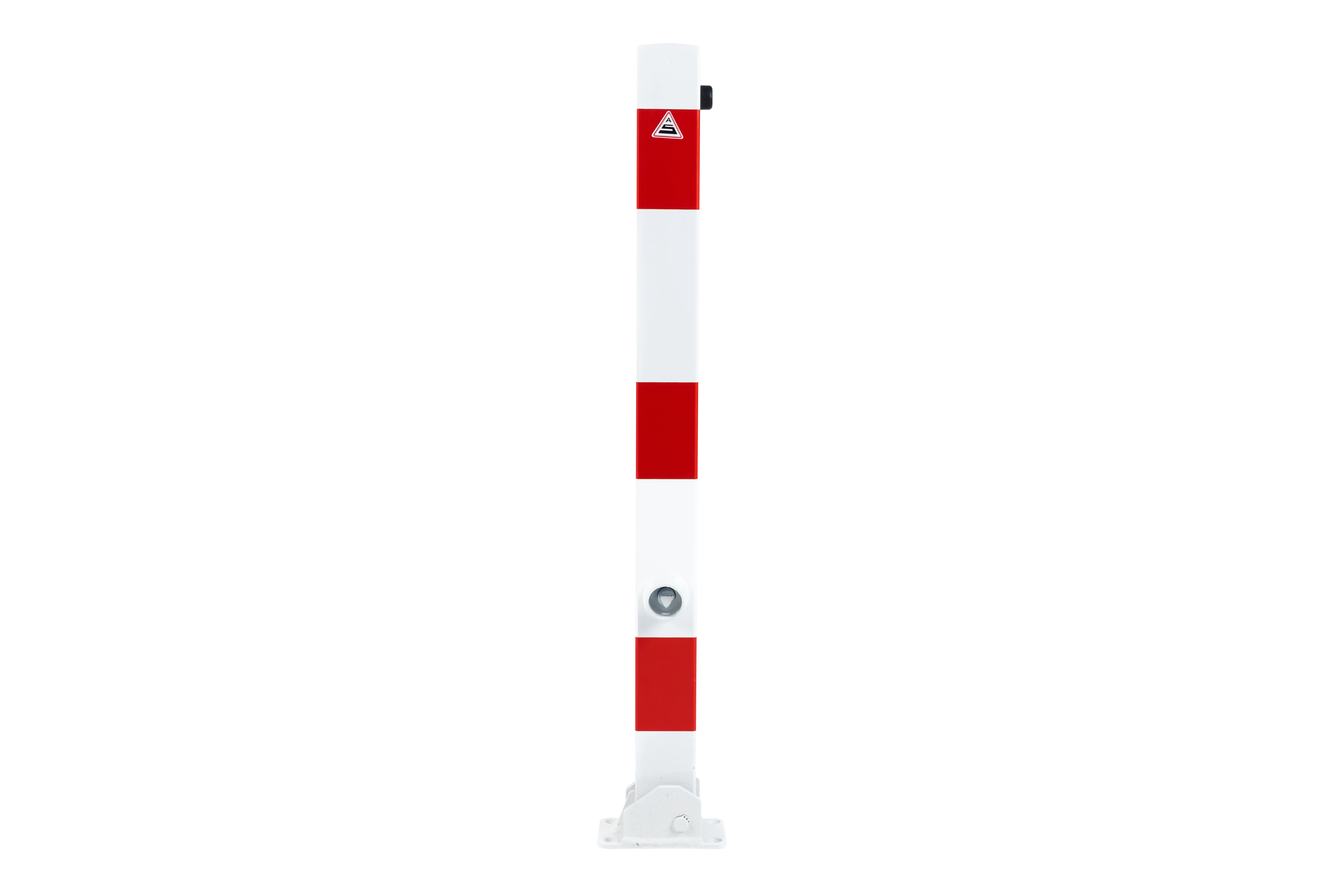 Produktinformationen "Absperrpfosten 70x70mm Umlegbar mit Dreikantverschluss mit Bodenplatte "